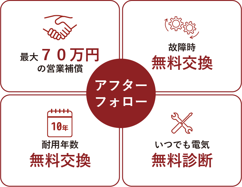 最大70万円の営業補償に加え、10年後の耐用年数交換までサポートします。